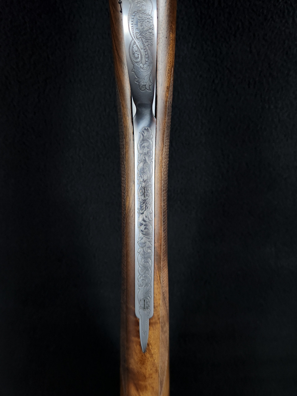 Hunters truly knowledgeable in classic shotguns immediately associate a round action with hunts in the Scottish highlands at a time when group hunts of this kind were important social occasions as well as sporting outings. Holding the 486 Parallelo and seeing its action will also evoke this association. Its round action contains only very few straight lines, and looks like it has grown organically together with the stock into something harmonious and beautiful. To the outside, the lines of the action are also complemented by English-style scroll engraving, which also extends to the top lever and trigger-guard.